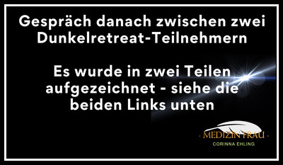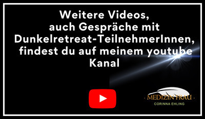 "In die Dunkelheit abtauchen - sorgfältig und liebevoll durch Corinna geführt - sich aufs komplett Unbekannte einlassen, die Tiefen der Seele nicht nur zulassen, sondern ganz erfahren wollen, sich dem Mystischen, Unbekannten hingeben...: Mein Dunkelretreat war eine Reise in die Tiefen und Höhen des Seins, mit gänzlich neuen Erfahrungen, Empfindungen, Erkenntnissen, die mir einen Blick in mein wahres Wesen und in die Magie des Universums eröffneten. Eine unvergleichliche Erfahrung, die ich als kostbare Energie in meinem Herzen trage und als Licht wieder in unsere Welt weitergebe. Danke dir von Herzen!"